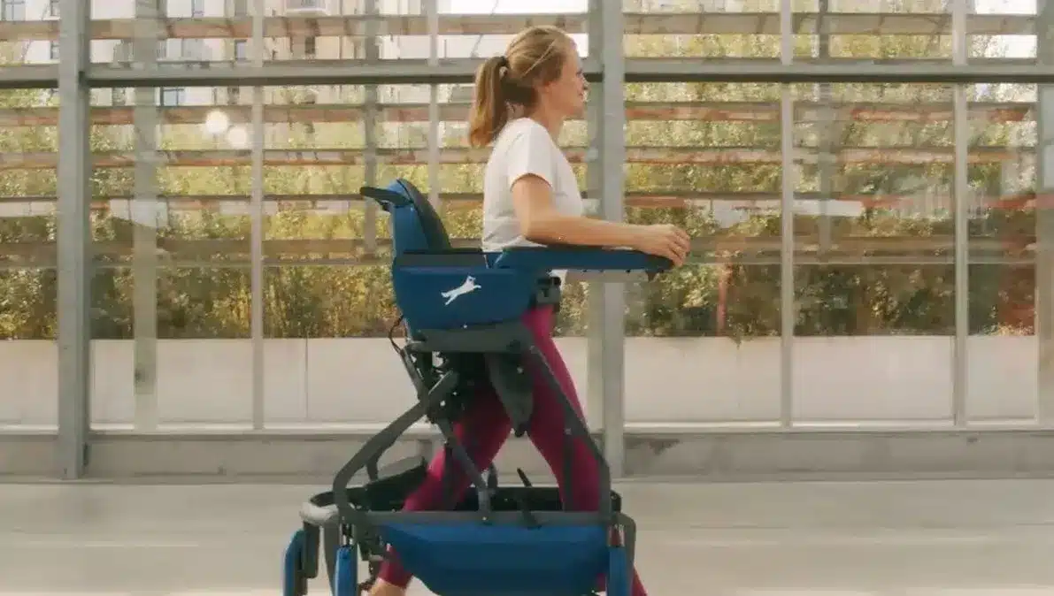 Oxilio n’est pas un fauteuil classique : il se situe entre le fauteuil, le déambulateur et l’exosquelette. Les utilisateurs peuvent s’asseoir et se déplacer comme avec un fauteuil traditionnel, mais aussi se lever grâce à un mode « exosquelette » activé par une simple impulsion corporelle. La technologie joue le rôle de « muscles en plus », compensant la faiblesse musculaire tout en autorisant des déplacements multidirectionnels en position debout. Le dispositif intègre aussi un système d’amortissement en cas de chute, garantissant une meilleure sécurité pour l’utilisateur.