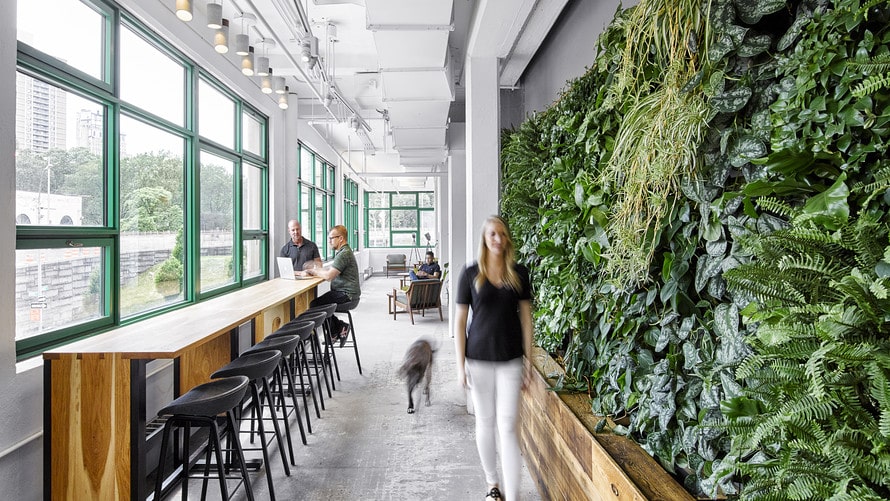 Des études ont montré que l’introduction de plantes dans le bureau peut améliorer la productivité et le bonheur des employés. Vous pouvez aller plus loin en construisant un mur de mousse végétale ou en ajoutant des jardinières à vos étagères. Vous pouvez également ajouter des plantes dans les open-space, mais aussi à l’accueil et les salles de repos ou cafétérias. Incorporer des plantes vivantes et des murs de verdure peut également augmenter les niveaux d’oxygène sur le lieu de travail, rendant l’air plus frais.